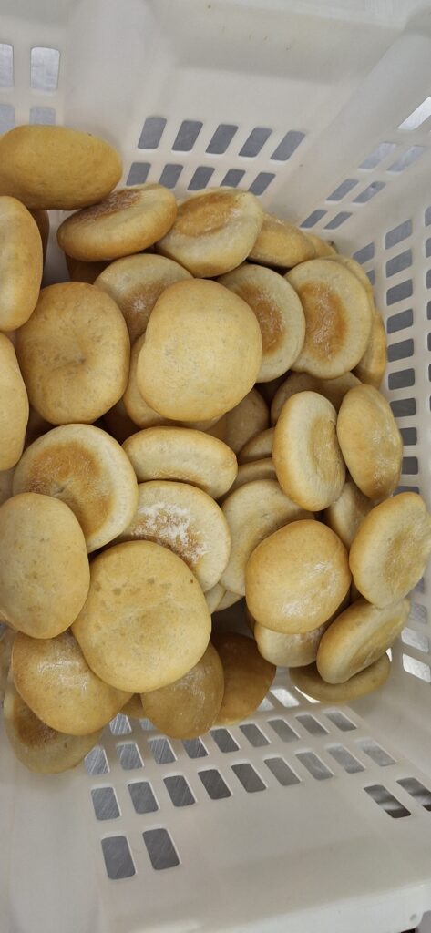 Kui mina läbi paksu pimeduse, mööda käänulisi teid kokkulepitult kella 2.30ks kohale jõudsin oli üks togi ( see on ca.2 m kõrge küpsetusplaatide käru) juba saiatooteid täis 🍞🥖